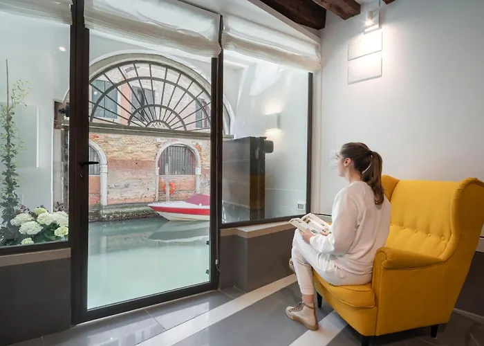Venetian Canal View 베니스는 두칼레 궁전에서 0.9km 떨어져 있습니다. 이 1개의 베드룸 아파트는 부엌과 1개의 욕실을 갖추고 있습니다.
